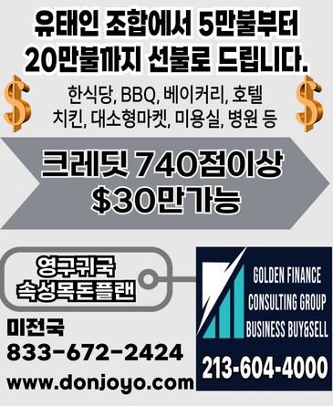 - 비지니스 융자 가능합니다(업종불문) 현금 바이어 대기