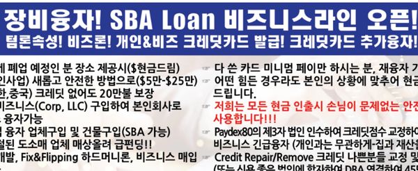 엘에이 오렌지 카운티 식당 도소매 누구나개인론 필요한분 SBA 중국계은행 펀딩!‘ 크레딧카드 현금화